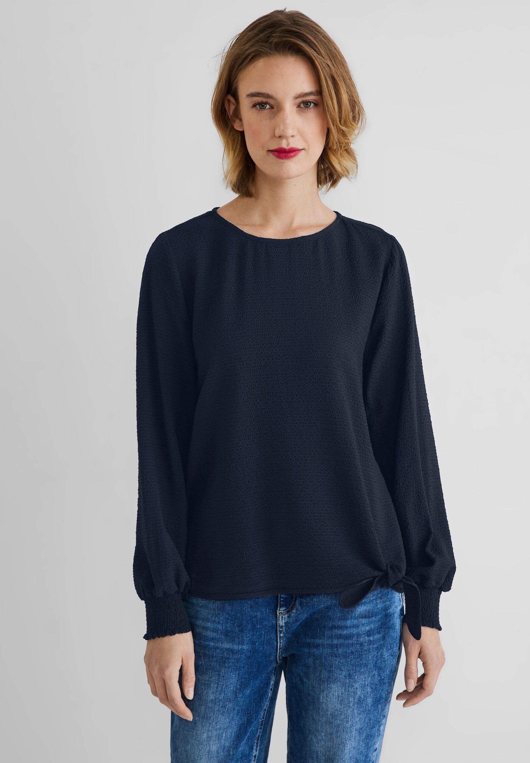 Beschrijving:A343799 Structured blouse w tie det
