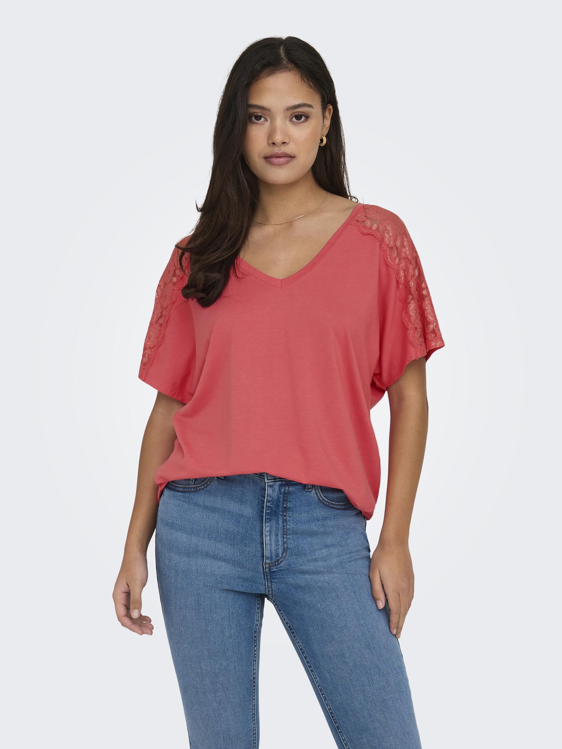 Beschrijving:ONLMOSTER S/S V-NECK LACE TOP JRS