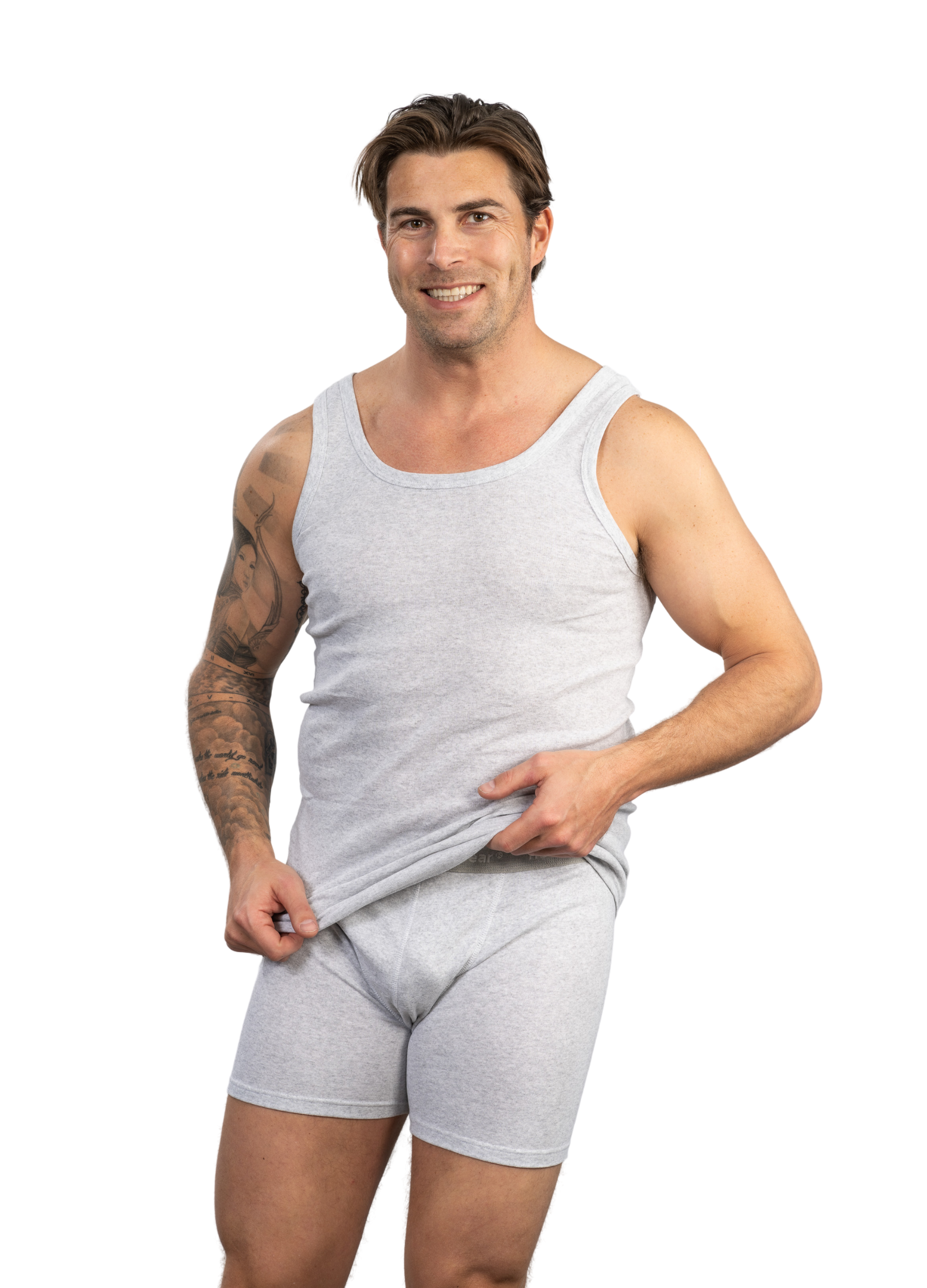 Categorieën: Merk: Beschrijving:Boxershort met langere pijpjes en grijze elastische tailleband